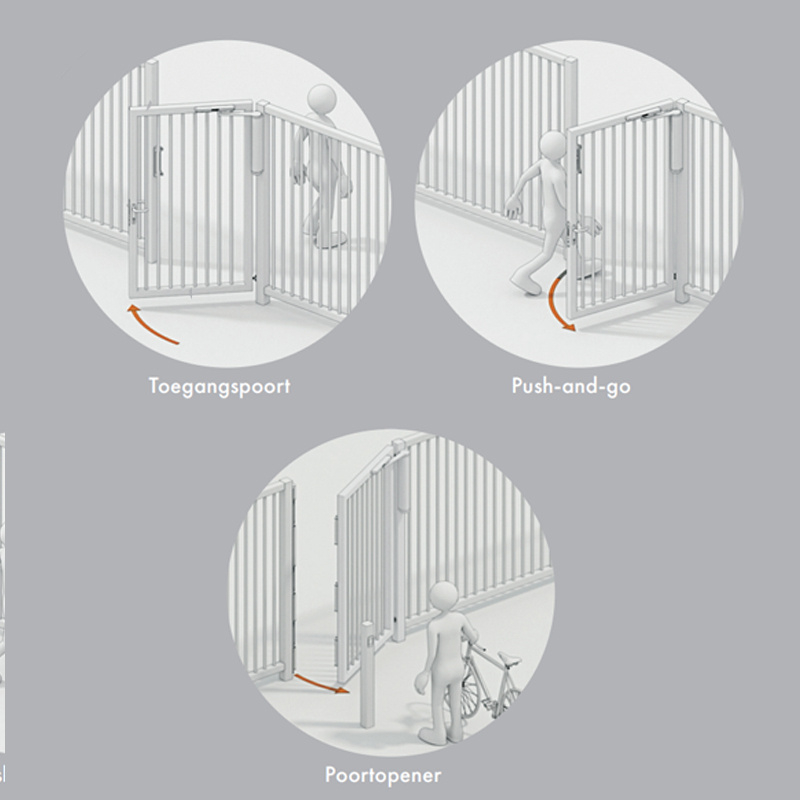 De VENUS wordt vaak toegepast bij bedrijventerreinen, scholen, appartementencomplexen en fietsdoorgangen waar gecontroleerde toegang gewenst is zonder dat gebruikers de poort handmatig hoeven te bedienen. Sluit de poortsluiter eenvoudig aan op toegangscontrole, zoals een intercom, keypad of kaartlezer, om de VENUS als energiezuinige automatische poortopener te gebruiken.