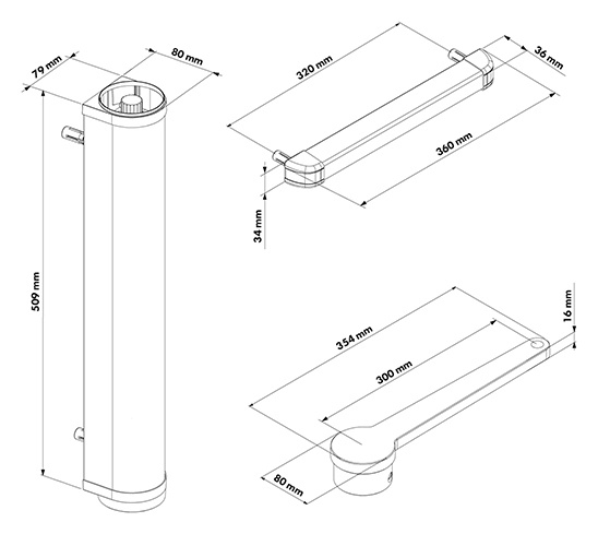 - Knikarm (VENUS-A) – voor situaties waar het draaipunt van de poort zich achter de kolom bevindt.