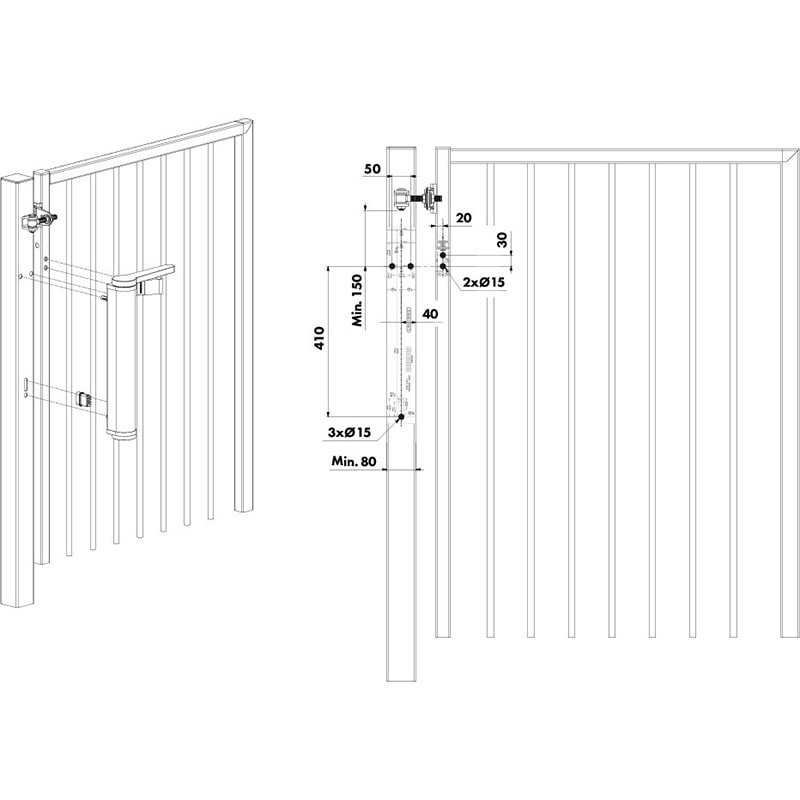 Dankzij het Quick-Fix bevestigingssysteem is montage snel en eenvoudig, zonder laswerk. De VENUS past op vierkante palen van 80 mm (of 60 mm met adapterplaat) en is geschikt voor zowel links- als rechtsdraaiende poorten.