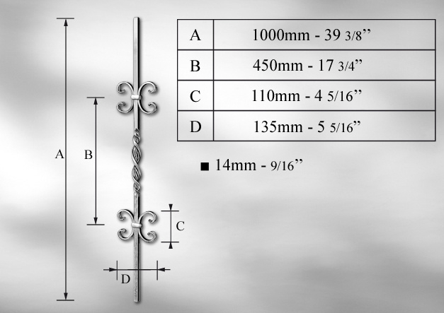 B0802~~SIERSPIJL # 14MM - LENGTE 1000MM