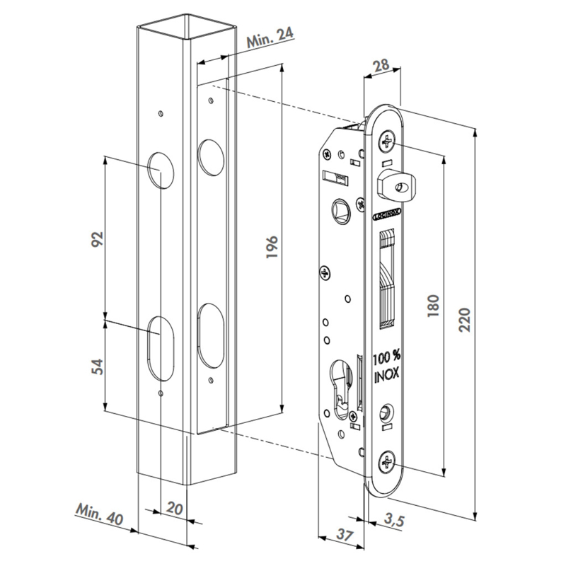 Technische specificaties Locinox FORTYLOCK insteekslot