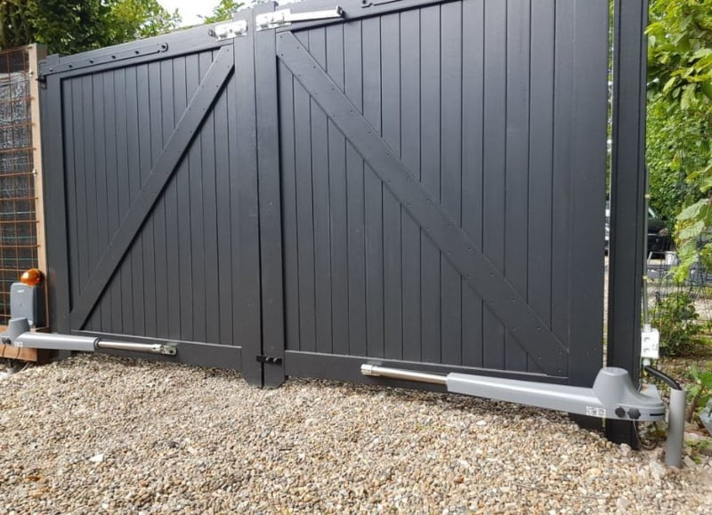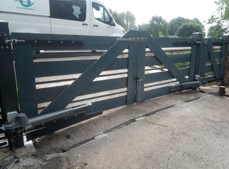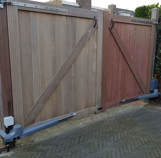 Onze monteurs gebruiken alleen de EON 600mm motoren voor openslaande deuren.  omdat de slag bij deze deuren groter is dan een gewone inrijpoort.