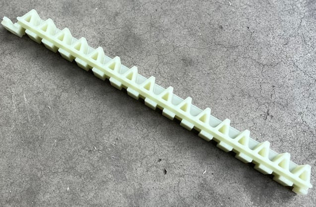 De tandlat van 300 mm lang wordt in de aluminium onderbalk van B&G A-liner schuifpoort geschoven.