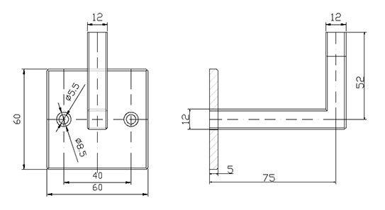 15.005.11~~VIERKANTE LEUNINGHOUDER MET 2 GATEN