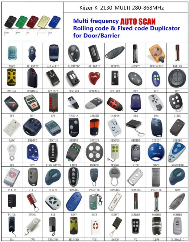 OverzichtKijzer-K-2130, kan ELK merk handzender kopieren. Onze Multi-frequency duplicate rolling code, learning code en fixed code zender , alles van afstand bedienen met dezelfde zender !! kleur is rood . bereik tot 100meter. waterdicht.