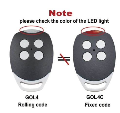 Bij de nieuwe zenders is het verschil te zien doordat de knoppen van de zenders met vaste code een afwijkende kleur hebben t.o.v. het frontje.
