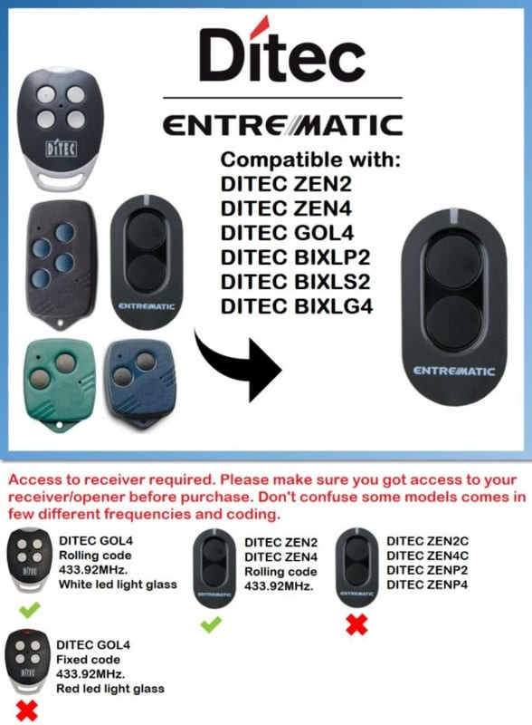 Let op voordat u een DITEC zender besteld, er zijn 2 soorten van frequenties: