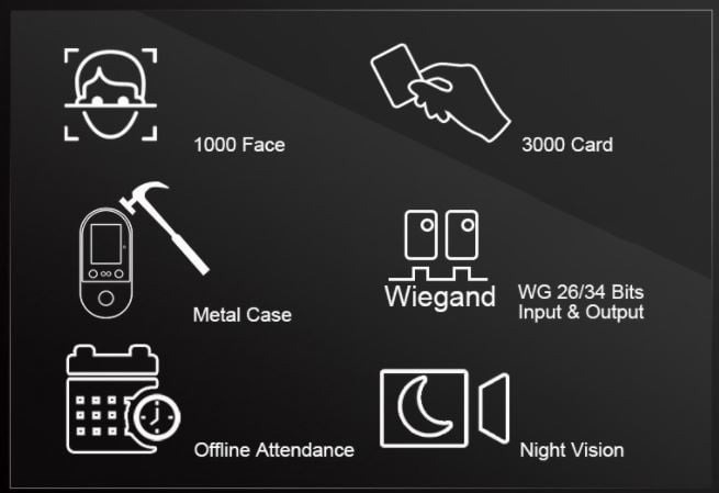 - > 1000 face users, 3000 card users (including 10 administrators)