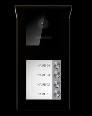 OverzichtVideo intercom buitenpost met een zwarte (RAL9005) aluminium behuizing: