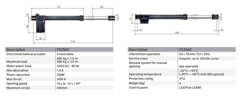 Ditec TS 35 is de nieuwe onomkeerbare telescopische aandrijving voor draaipoorten voor frequent gebruik en residentiële toepassingen. Snel te installeren, in slechts drie eenvoudige stappen: met gesloten poort de motor op de pilaar bevestigen met behulp van de voorgeboorde beugelplaat, de telescopische arm uitschuiven en aan de poortvleugel bevestigen. EXTREEM STEVIG gebouwd betrouwbaar om langer mee te gaan het gebruik van roestvrij staal voor de motoras, tandwielen en schroef zorgt voor superieure duurzaamheid. Deze set heeft wel een middenstop in de oprit nodig, waar de poort tegen drukt.