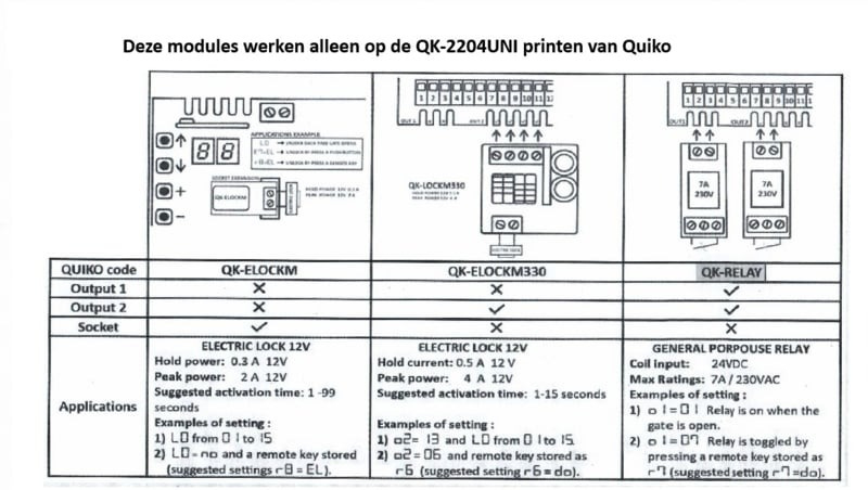 OverzichtQK-elockm slot module welke direct in de QK-CE2204 UNI print gestoken kan worden.