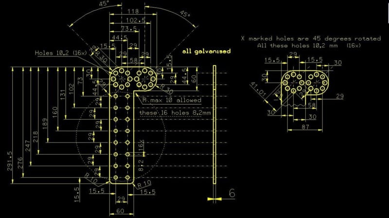 Montage op penant of muur: 6x per motor : gaten boren rond12mm vullen met soudal chemisch anker en draadeindes m10 indrukken. (geen pluggen of keilbouten gebruiken, deze gaan na verloop van tijd los zitten.)