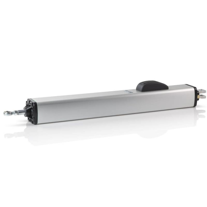 De actuator is self-locking, zodat de poort niet ongewenst met de hand kan geopend worden, maar kan ontkoppeld worden ingeval van stroomuitval dmv een standaard meegeleverde sleutel.