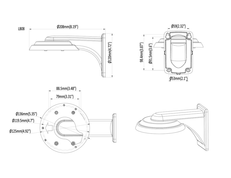 OverzichtMuurbeugel voor Entrya IP Turret camera's.
