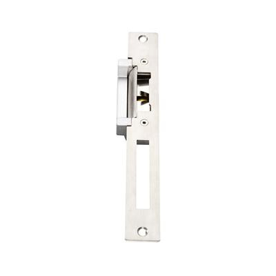 OverzichtElektrische sluitplaat 12 Vdc of 24 Vdc, werkingsmode standaard arbeidsstroom omschakelbaar naar ruststroom, houdkracht 500 kg, RVS afwerking, voorzien van terugmeldcontact en dagschootgeleiding.