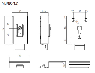 OverzichtAC20 verticaal elektrisch slot 12 Vdc.
