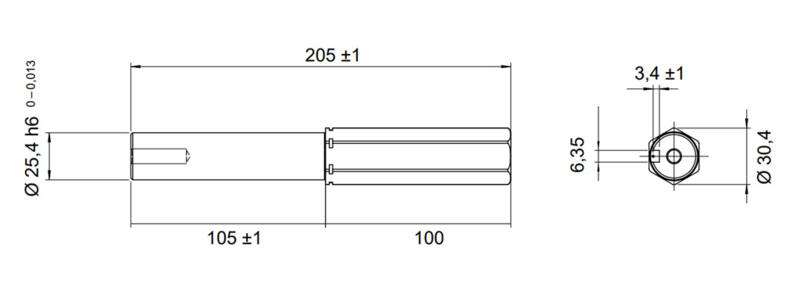 Aandrijving: holle as diameter 25,4mm met spieƫn.