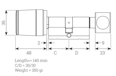 - Cilinderafmetingen C/D 30x30 mm.