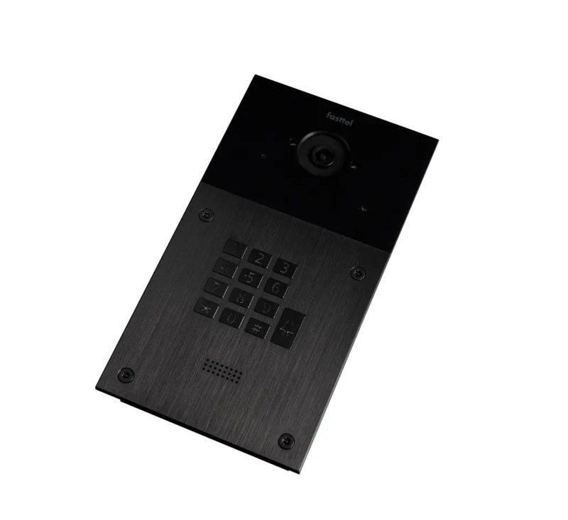 Fasttel FT600KVC is een videofoon met 2 sip accounts, zwart geanodiseerd en beschikt over 1 drukknop, codeklavier en kleuren camera. De meegeleverde behuizing laat toe het toestel zowel op-als inbouw te plaatsen. 216x116mm.(HO)