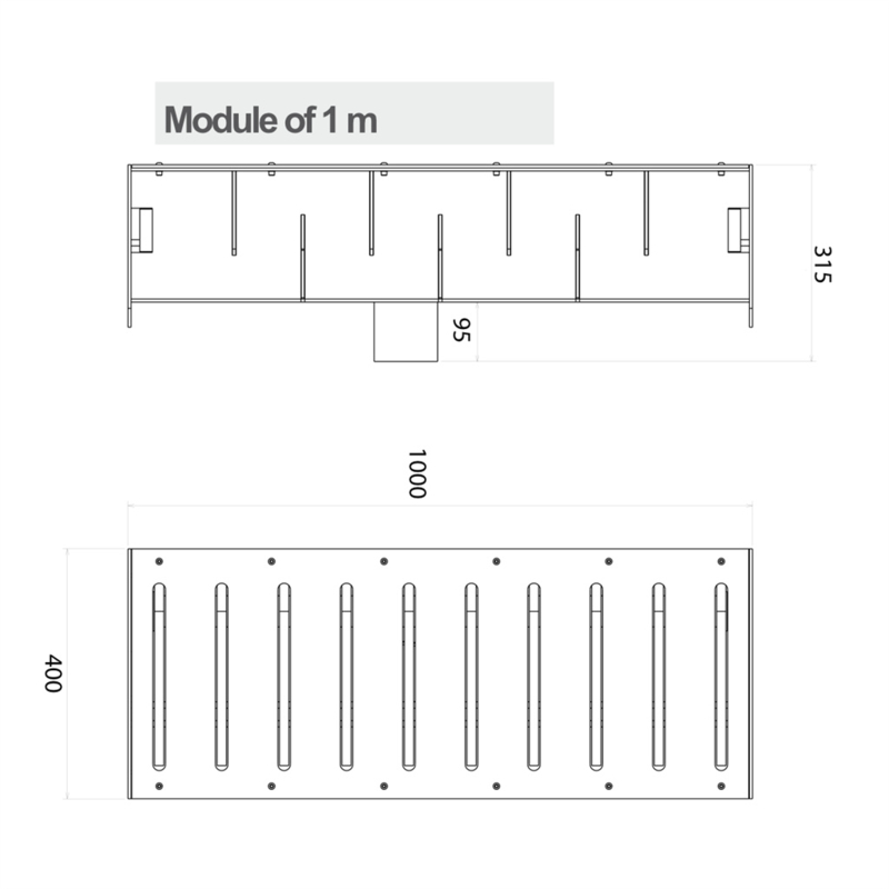 - Modules van 1 en 2 meter met een maximum van 5 meter
