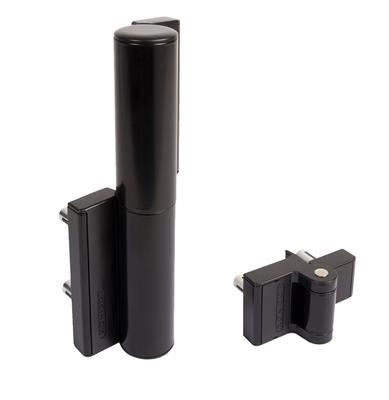 TIGER-9005 - Hydraulische poortsluiter en 180° Puma-scharnier voor poorten tot 75 kg, RAL9005. Art nr. MIC950 9005 (NE)