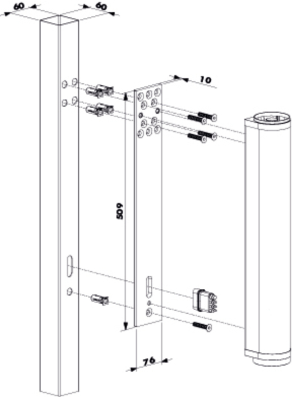 OverzichtAluminium adapterplaat om de VENUS te monteren op een paal van 60mm breed of op een muur. Eenvoudige bevestiging op paal met QUICK-FIX.