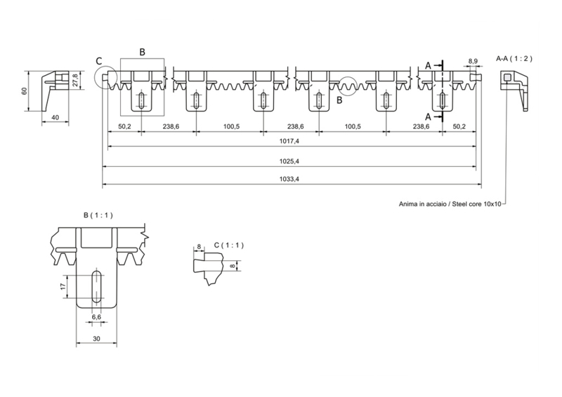 - PVC met metalen kern, lengte 1m, bevestiging aan de kant van de tanden, kleur zwart-Te gebruiken met FSCREW (niet inbegrepen)