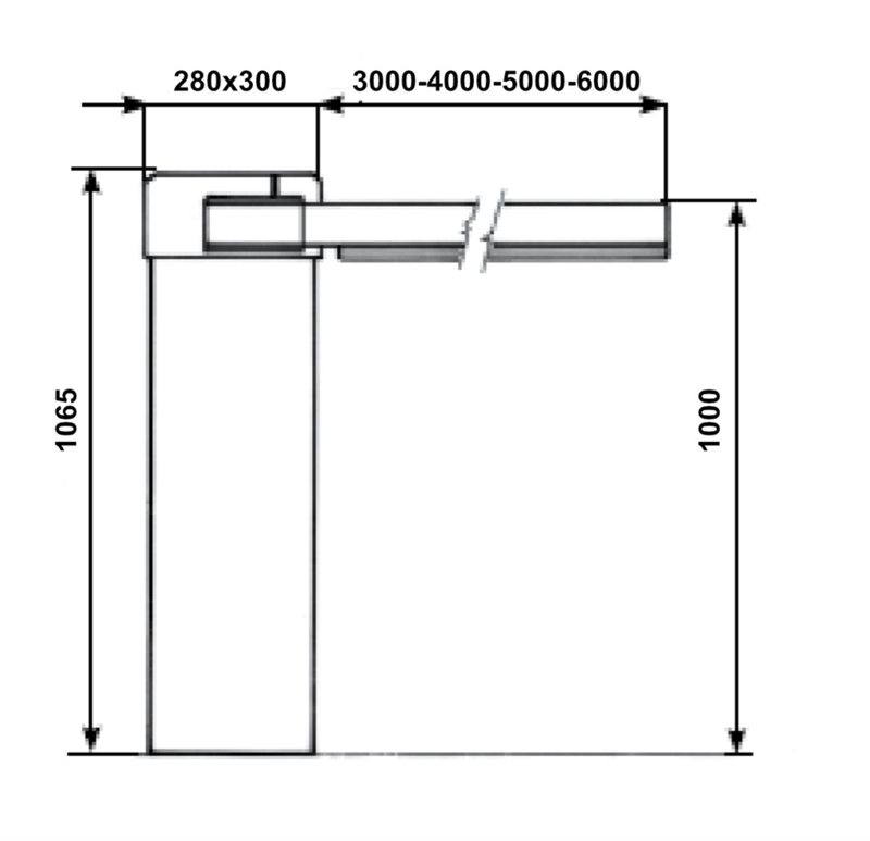 Overzicht- Slagboom monofasig 230V met sturing PARK230, openingstijd 6,5 sec, soft stop, boomlengte max. 5m