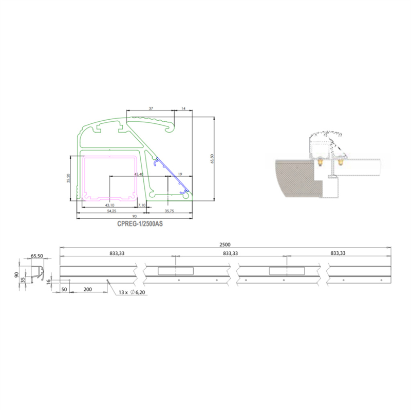 | Afmeting | 131x2500x65,5 |