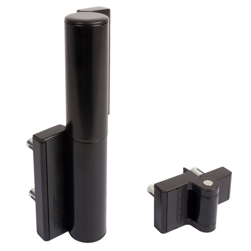 Locinox MAMMOTH180-9005~~Art. nr. P00017909-9005, P00009344-9005 - Hydraulische poortsluiter en gelagerd scharnier-zwart (TH)MAMMOTH180-9005~~P00009344-9005 - HYDRAULISCHE POORTSLUITER EN GELAGERD SCHARNIER-ZWARTElegante krachtige poortsluiter voor 180° poortsituaties. Mammoth is een echte krachtpatser en is perfect geschikt om zware poorten tot en metā¦