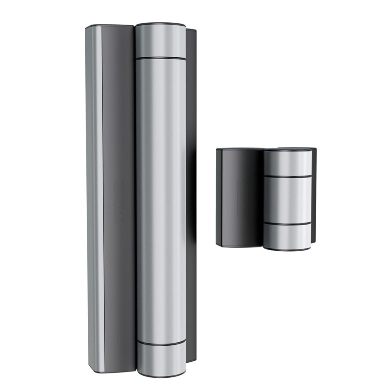 RHINO-SILV - Esthetische 180° poortsluiter met rechtstreekse koppeling op het scharnier, ZILVER. Art nr. MIC957 ZILV (NE)Maak van uw 180° scharnier een zelfsluitende oplossing dankzij de Rhino hydraulische poortsluiter. De rechtstreekse koppeling op het Locinox scharnier garandeert een discrete look en een krachtige overbrenging van de vereisteā¦