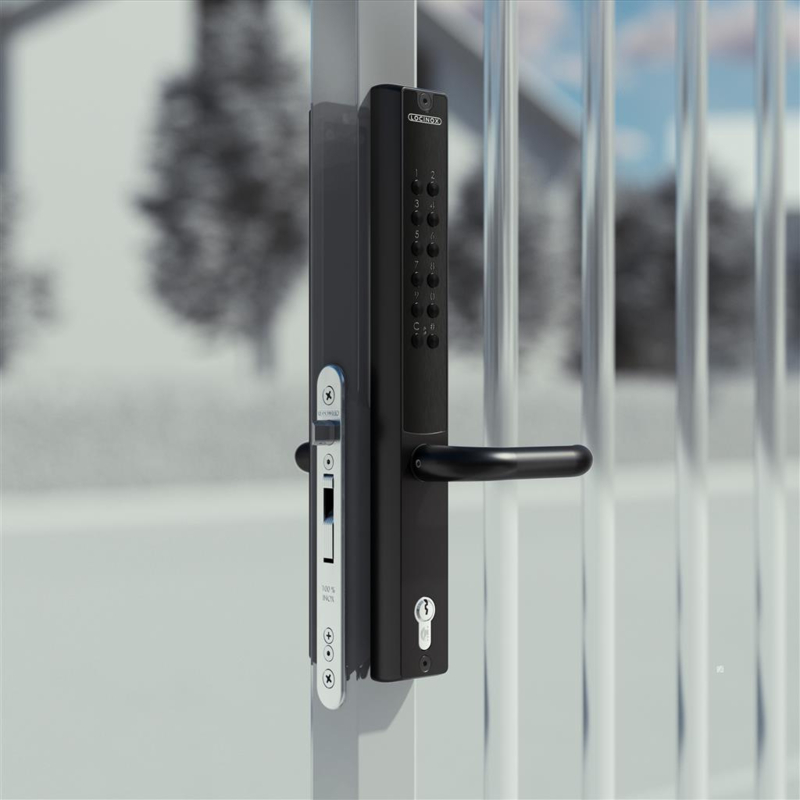 VERA - Bat.gevoed codeslot voor insteeksloten, profieldiepte 40mm, GSZ, Gelijksluitend, Enkel. Art nr. COD05501 9005 (NE)Voeg op een heel eenvoudige manier toegangscontrole toe aan voetgangerspoorten. VERA is een batterijgevoed codeslot voor poorten met insteeksloten (FORTY-, FIFTY-, SIXTY- of EIGHTYLOCK). Kies, wijzig of verwijder eenvoudig tot 100ā¦