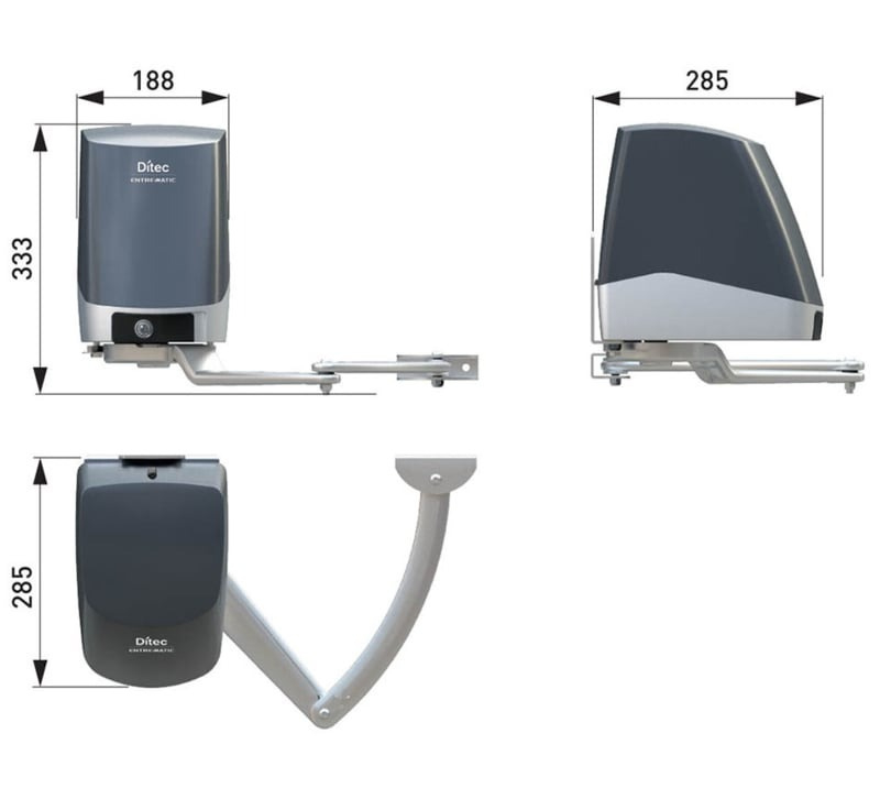 Ditec Arc 1BH , kit knikarm motoren. 2x24V, tot 5 meter vleugellengte. Voor intensief gebruik. Kit draaihekaandrijving knikarm opbouw tot 5m vleugel basis (HO)Kit draaihekaandrijving knikarm opbouw tot 5m vleugel basis 2 x ARC1BH 1 x LCU40H 2 x ZEN2 handzender 1 x LIN2 fotocel