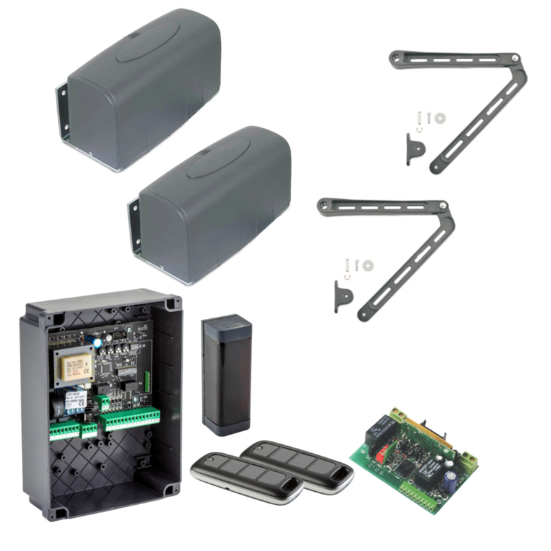 GiBiDi KIT ART5000-F4 PLUS-RX-2 x TX-IR. Art nr. GBDK351-BF (NE)Elektromechanische opener op 230 Vac met knikarm voor draaihekken van middelgrote afmetingen en gewicht voor residentieel en intensief gebruik.EENVOUDIG TE INSTALLERENDankzij de speciale bevestigingsplaat kan men de opener snelā¦