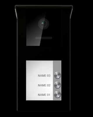 Facila neXt D21S/B3 buitenpost 3 drukknoppen Art nr. 105070 (SE)Video intercom buitenpost met een zwarte (RAL9005) aluminium behuizing: