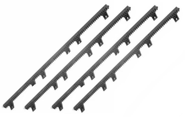 8 meter kunststof tandlat module 4 met 6 bevestigingspunten, donkergrijs .versterkt met stalen kern inwendig. extra sterk en stil. Meest verkochte set. (QU)Nieuwste nog stillere . 1.02 meter kunststof tandlat module 4 met 6 bevestigingspunten, donkergrijs .versterkt met stalen kern inwendig. extra sterk en stil.