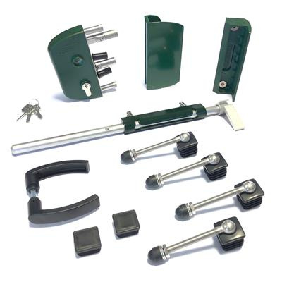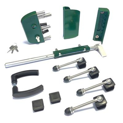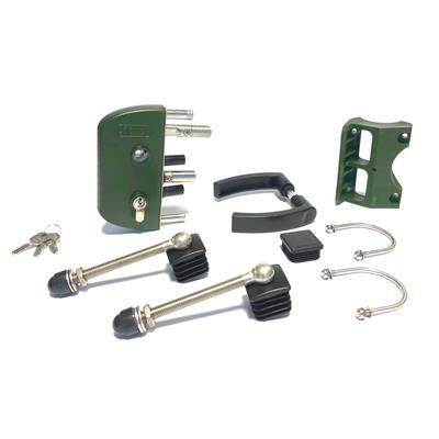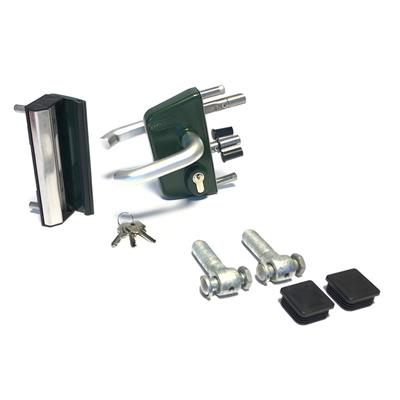 Slotset voor dubbele tuinpoort met GAAS vulling met doorboorscharnieren - RAL6005 Art. nr. SLOTSET6005TPD Bekijk inhoud van het pakket prijs per Stuk(s) excl. BTWSLOTSET VOOR DUBBELE TUINPOORT MET GAAS VULLING MET DOORBOORSCHARNIEREN - RAL6005 PRIJS PER STUK(S) EXCL. BTWArt. nr. SLOTSET6005TPD