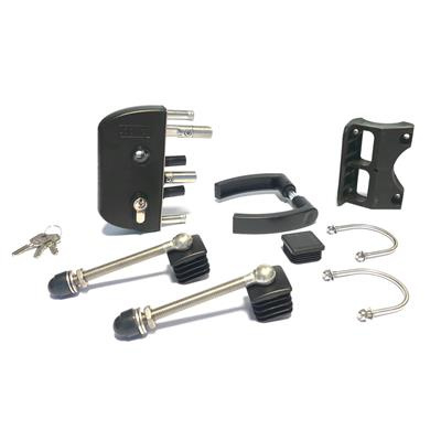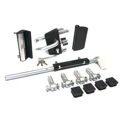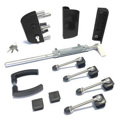 Slotset voor dubbele tuinpoort met GAAS vulling met doorboorscharnieren - RAL9005 Art. nr. SLOTSET9005TPD Bekijk inhoud van het pakket prijs per Stuk(s) excl. BTWSLOTSET VOOR DUBBELE TUINPOORT MET GAAS VULLING MET DOORBOORSCHARNIEREN - RAL9005 PRIJS PER STUK(S) EXCL. BTWArt. nr. SLOTSET9005TPD