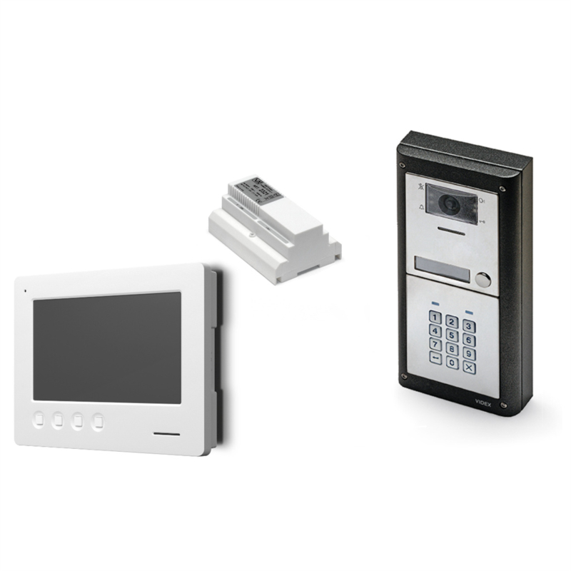 VIDEX Videokit 6dr opb + code 4k / 6K3 Art nr. VPK46363 (NE)Videofoonkit met een breedte van 135mm voor opbouwmontage met 1 beldrukker en 1 binnentoestel en voorzien van een codebedienpaneel.