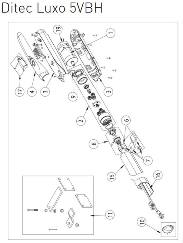 Ditec 2x eindkap Voor de Luxo 5VBH (motor met borstels onder de spindel) (pos 10 op tekening) (HO)2x eindkap Voor de Luxo 5VBH (motor met borstels onder de spindel) (pos 10 op tekening)