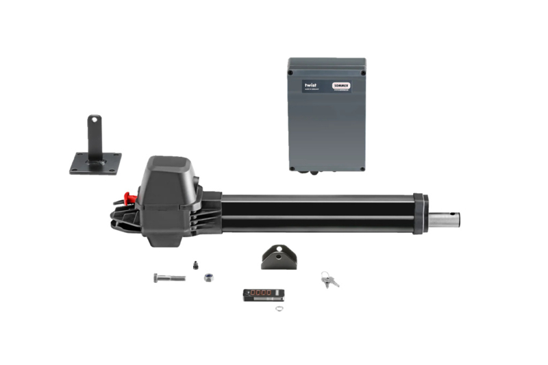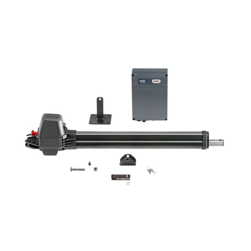 Sommer Twist 350 kit 1 motor met Pearl Vibe zender Art nr. 103846 (SE)Kit met 1 elektromechanische aandrijving op 24 Vdc voor vleugelbreedtes tot 4000 mm, een besturing met inplugontvanger/repeater en 1 zender met 4 knoppen.