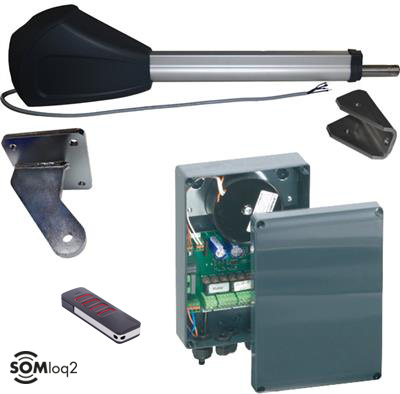 Sommer Twist 350 kit 2 vleugels met Pearl Vibe zender Art nr. 103705 (SE)Kit met 2 elektromechanische aandrijvingen op 24 Vdc voor vleugelbreedtes tot 4000 mm, een besturing met inplugontvanger/repeater en 1 zender met 4 knoppen.