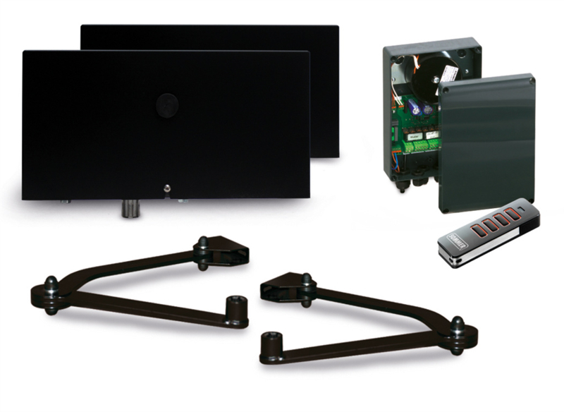 Sommer Twist ML kit S3 zwart 2 vleugels + Pearl Vibe Art nr. 105330 (SE)Kit met 2 elektromechanische aandrijvingen op 24 Vdc voor vleugelbreedtes tot 2500 mm, een besturing met inplugontvanger/repeater en 1 zender met 4 knoppen.