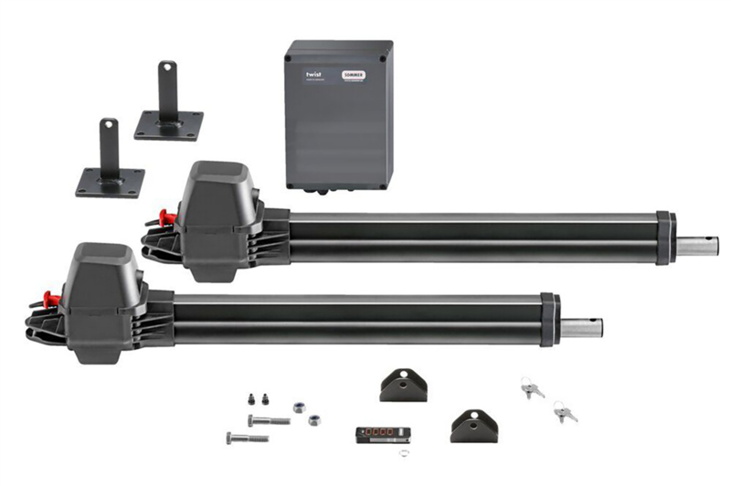 Sommer Twist AM kit 2 motoren met Pearl Vibe zender Art nr. 104445 (SE)De Twist AM is bijzonder geschikt voor draaihekken met brede palen (tot ca. 60 x 60 cm) en met extra grote vleugels met een max. vleugelbreedte van 2,5 m en een max. vleugelgewicht van 250 kg.