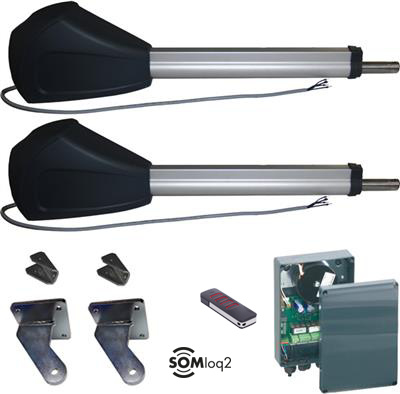 Optimus 250S AC kit smalle paal 2 vleugels Art nr. 104920 (SE)Kit met twee knikarmmotoren 230 Vac voor montage op smalle palen.