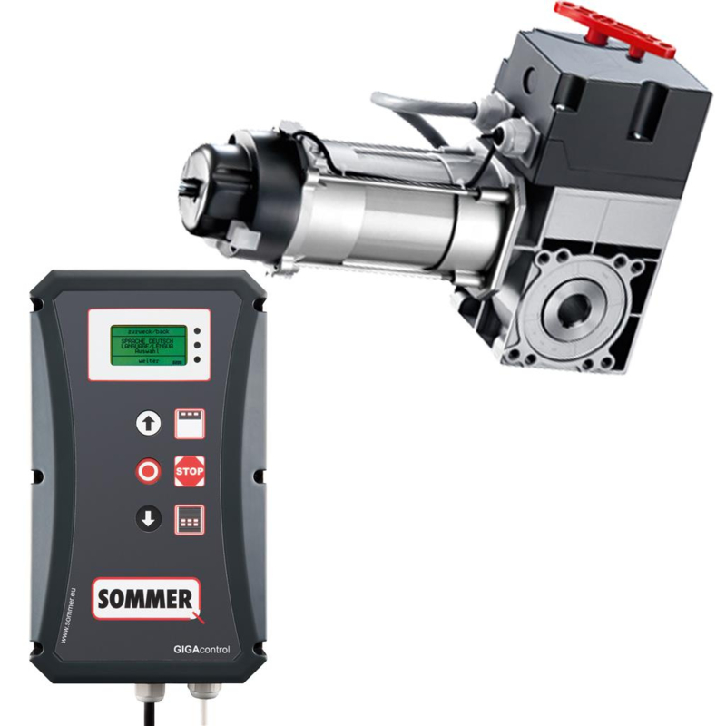 Sommer Kit GIGAsedo 024.100 CMET0 met GIGAcontrol-A-R3 Art nr. 103911 (SE)Kit voor industriële sectionaaldeuren met een driefase motor van 100 Nm en een as van 1" (25,4 mm). Een encoder, een manuele bediening d.m.v. een takelketting, een serviceontgrendeling voor hulp bij service en een heel…