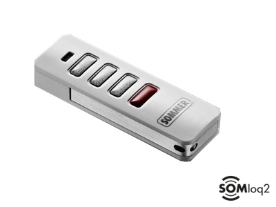 Sommer Slider+ zender met 4 knoppen Art nr. 104253 (SE)Handzender op 868 MHz en superveilige 128 bit AES-versleuteling. Druk je de zendtoets 3 sec. in, dan zal de zender het signaal 5 maal herhalen.