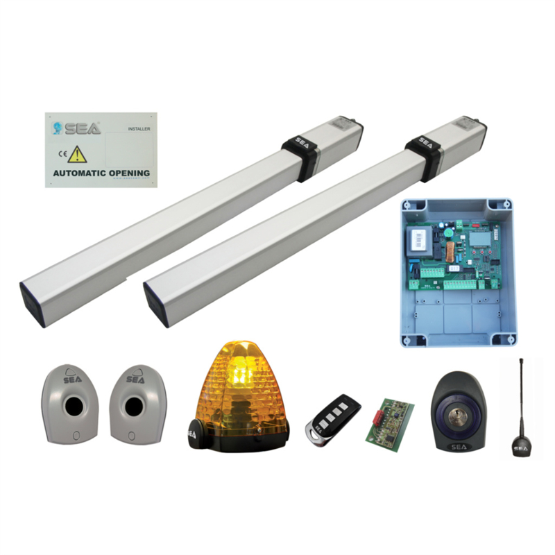 SEA Kit SURF 350 H 24Vdc. Art nr. KIT946 (NE)Kit SURF 350 H 24Vdc. Bestaande uit 2x Surf 350H lineaire motoren CUS701, 1x stuurkast User 2 24V DG STS431, 1x inplugontvanger RF Uni433 SEA ZSE045, 2x zenders Coccinello 4-kanaals ZSE304 en 1x Fotocel Flips 14-180°ā¦