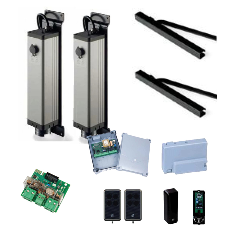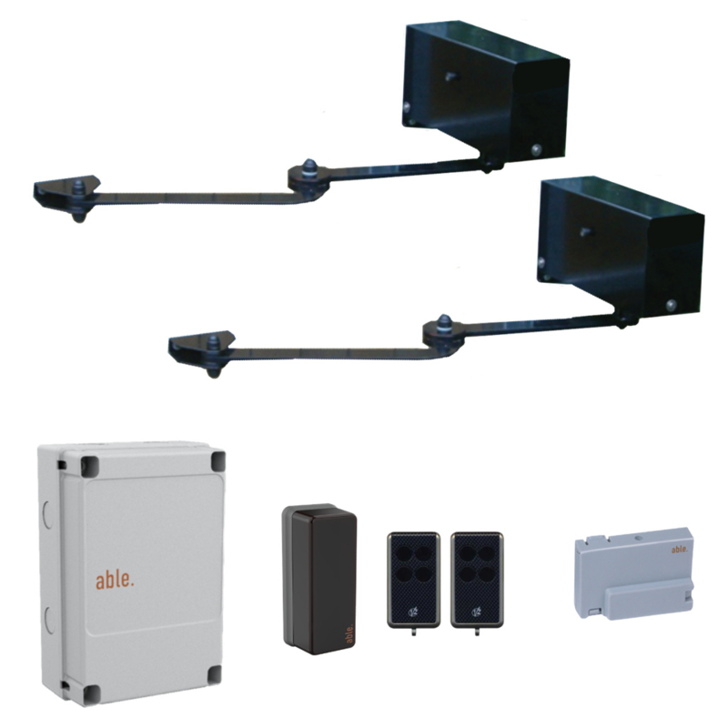 V2 Able Knikarm Kit Ciclon CUV305 220Nm met knikarm. Art nr. KIT941 (NE)Kit met 2 Ciclon 220 onomkeerbare knikarm motoren CUV305. Bestaande uit: 2x CUV305, 1x stuurkast City-1 evo STU830, 1x fotocel FOT280, 1x ontvanger PAP015 en 2x personal pass zenders PAP604. Zeer krachtige motoren. Practischā¦