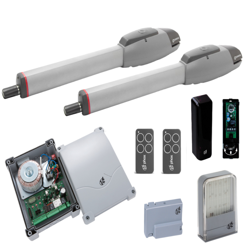 V2 Able Knikarm Kit CUD102 (onbewerkt). Art nr. KIT936 (NE)Kit met CUD102 knikarm motoren. Bestaande uit: 2x CUD102 Vektor knikarm electomechanische motoren, 1x City-1 evo stuurkast STU830, 1x V2 Sensiva fotocel FOT280, 1x ontvanger MR2-U PAP015 en 2x personal pass zendertjes 4-kanaalsā¦